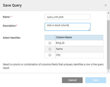 • Queries returning a PAGINATED response containing Blob field should provide Identifier while saving the query