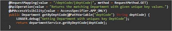 Each of the layers performs its function and delegates the call to the next layer in the chain. For example, after the unmarshaling of the JSON data to the model, and authorization checks, the REST layer delegates the call to the service layer, and more.