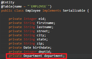 department.name = ‘Engineering’, the name is the fieldname ofDepartment.java