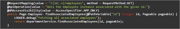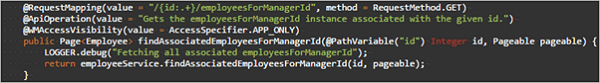 Each of the layers performs its function and delegates the call to the next layer in the chain. For example, after the unmarshaling of the JSON data to the model, and authorization checks, the REST layer delegates the call to the service layer, and more.
