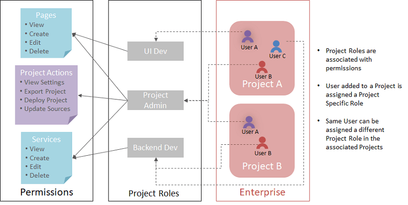 - Project Roles: Developers & project leaders who are involved in the application development using the platform.