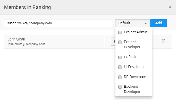 Project Roles come with a pre-defined roles of Project Admin, Project Developer and Default.