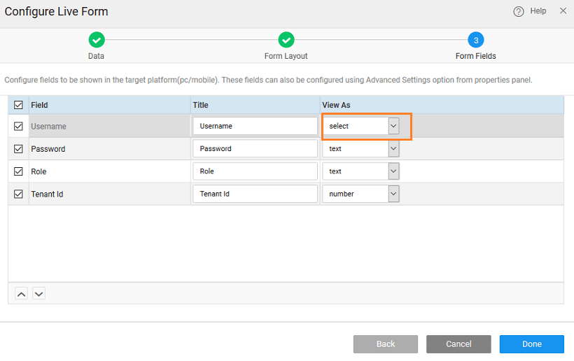 Live Form - Fields Configuration