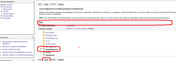 3. Provide the path to the location of war file in the Path text box, select the war file and click the Next button.