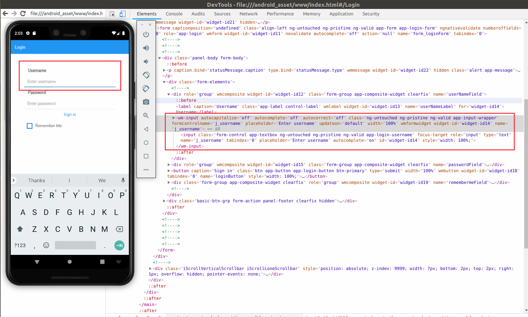 • Launch the application in emulator and navigate to chrome://inspect/#devices from chrome browser and open the remote debugging window of the launched application.