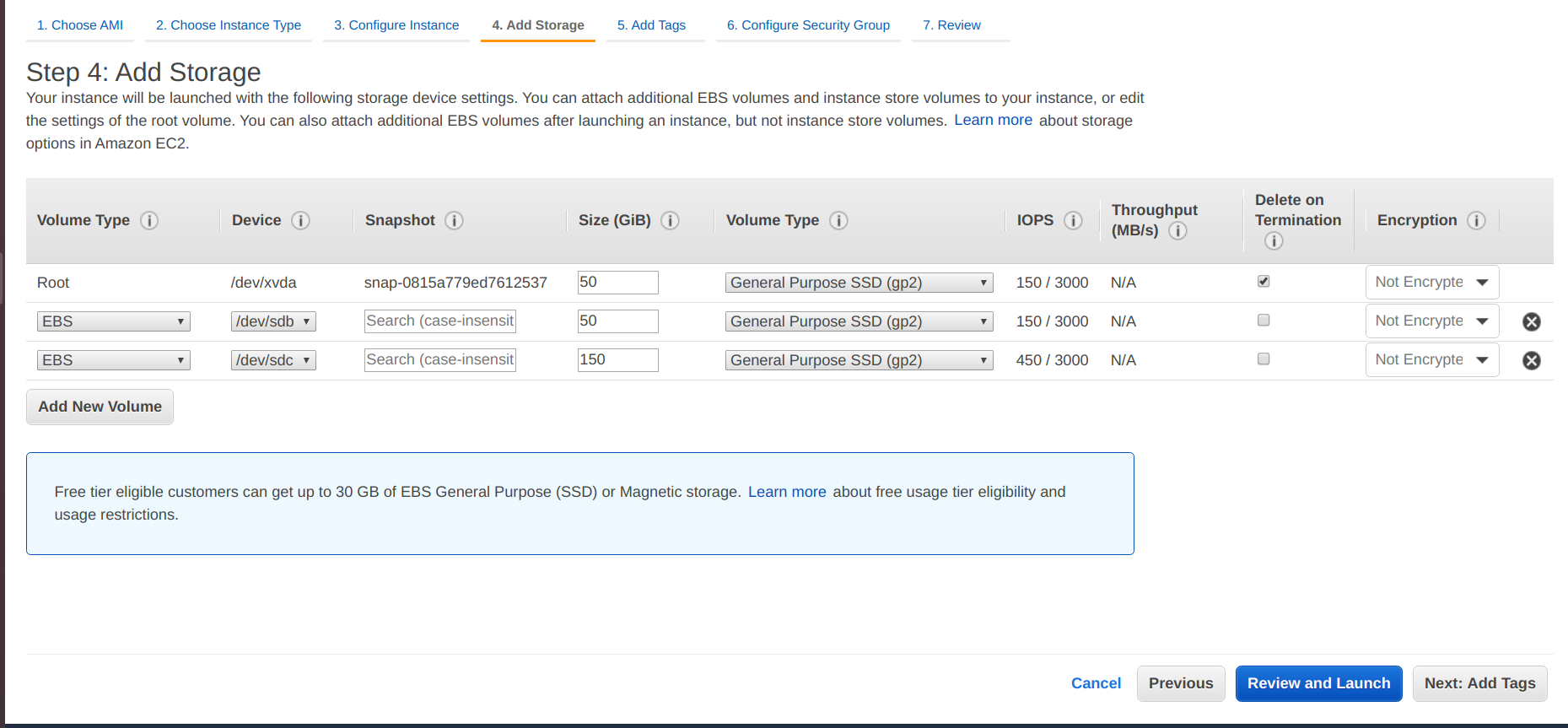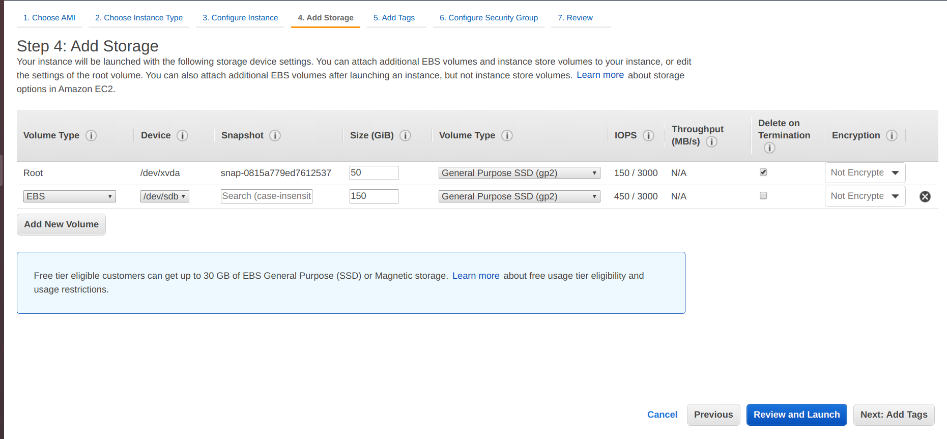 - To mount an attached EBS volume on every system reboot, add an entry for the device to the /etc/fstab file.