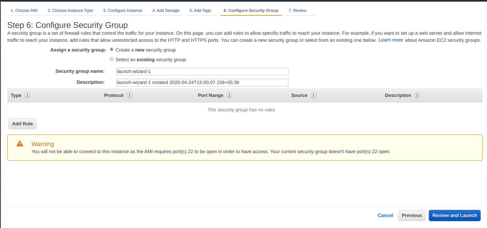 - For creating security group, you need VPC. If you don't have a VPC and want to create one, to learn more about it, see AWS documentation for creating VPC.