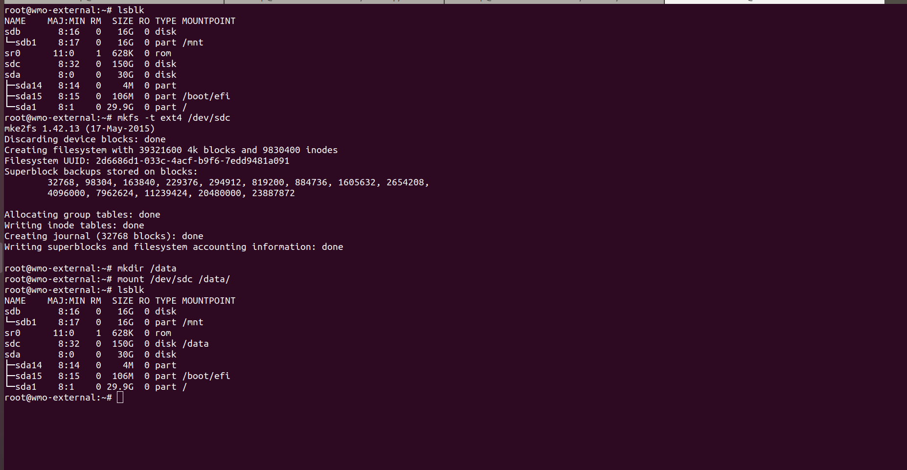 - Check your list of block devices available by using the following command.
