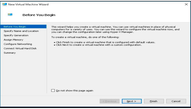 • Open Hyper-V, Right-click on your Hyper-V host, click on New, Select virtual machine for creating a platform virtual machine.