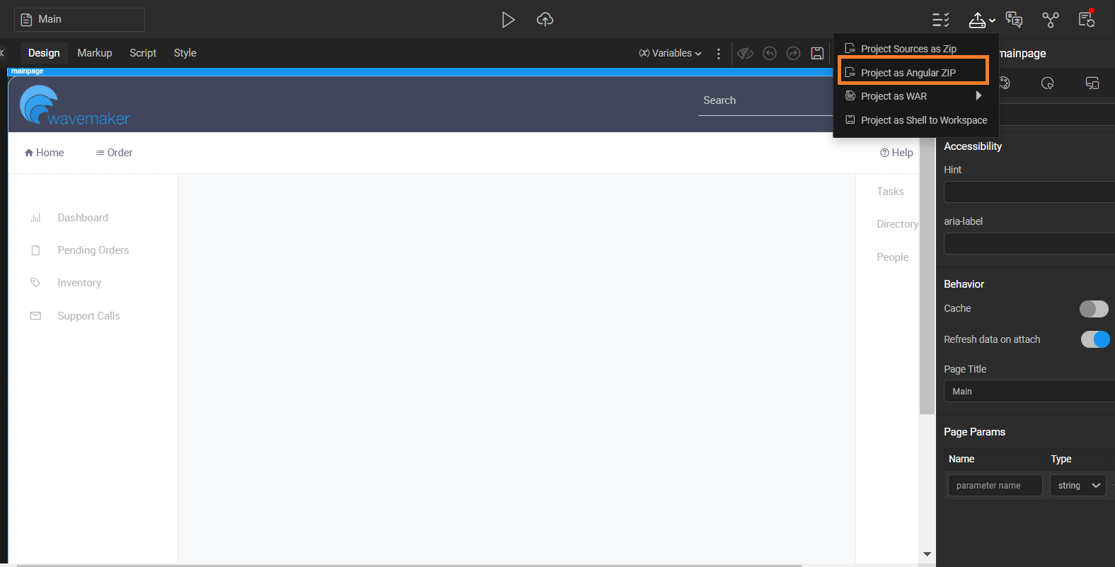 Now our code can be extracted and executed as a standalone Angular frontend application. To facilitate this, we have introduced a new option called Project as Angular Zip.